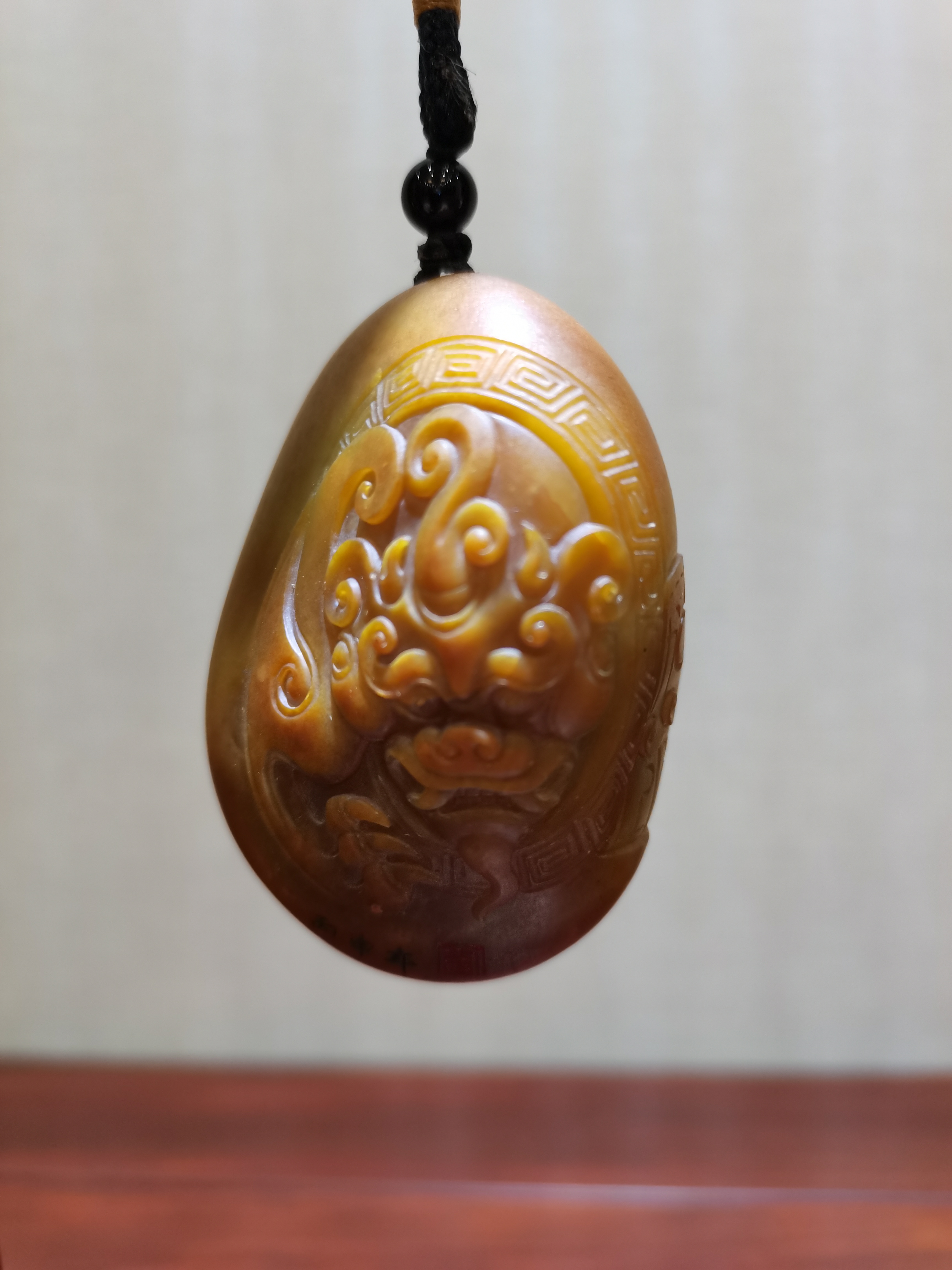 此款和田玉把件,大師工藝,線條流暢,雕刻的貔貅伶牙利爪、威武霸氣,大師印記清晰可見,故得名:招財(cái)貔貅