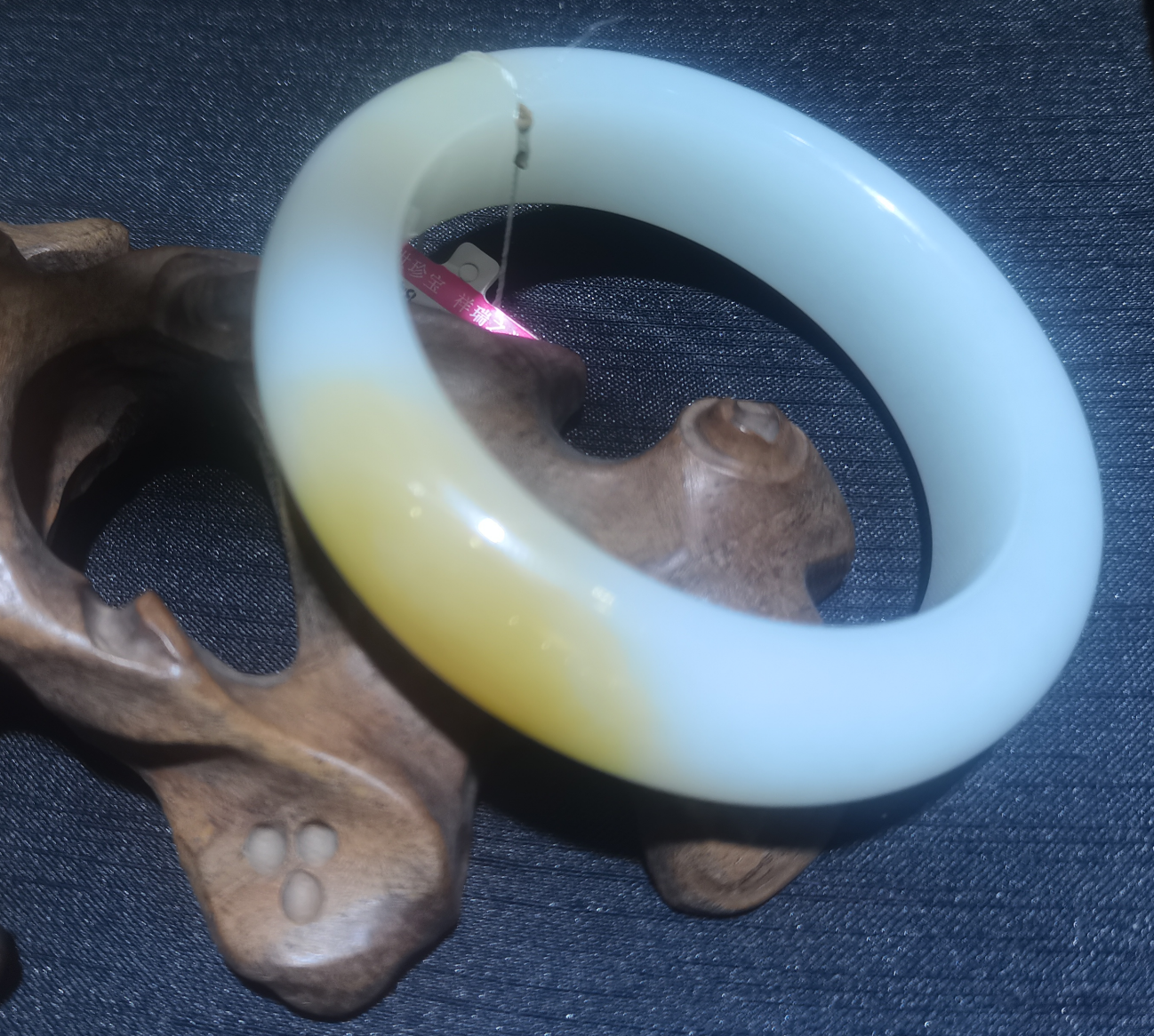 此款和田玉手鐲整料制作,精細(xì)打磨,潤(rùn)澤白皙,玉質(zhì)老熟、細(xì)膩,黃糖白肉,肉色分明,非常難得,具有極高的價(jià)值,實(shí)屬愛玉之人賞戴之珍品。