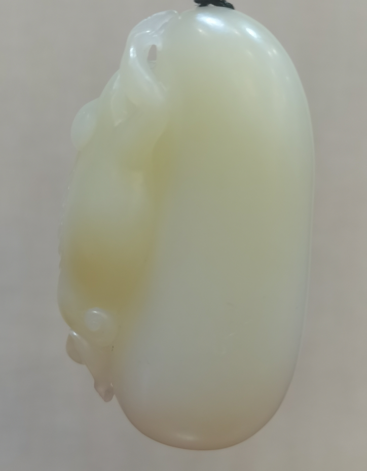此款和田玉掛件,色澤相當(dāng)漂亮,玉質(zhì)細(xì)膩,油脂感強(qiáng)。通體帶有淺淺糖色,若隱若現(xiàn),完美詮釋了玉石的含蓄內(nèi)斂之美,乃集賞、玩、藏之精品。