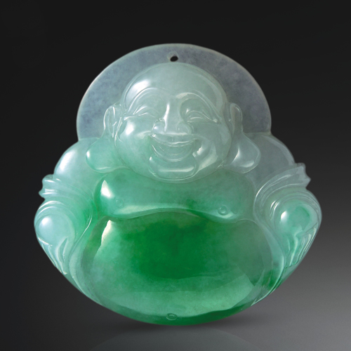 玉質(zhì)純凈細(xì)潤,翠色艷麗,笑佛喜樂開懷。