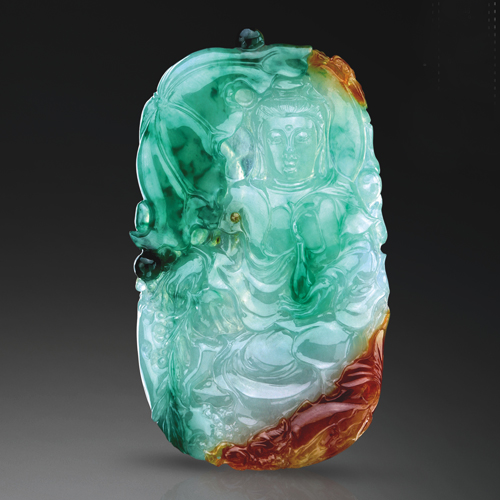 天然福祿壽三彩玉料,種好質勻,色澤艷麗,精工雕琢。
