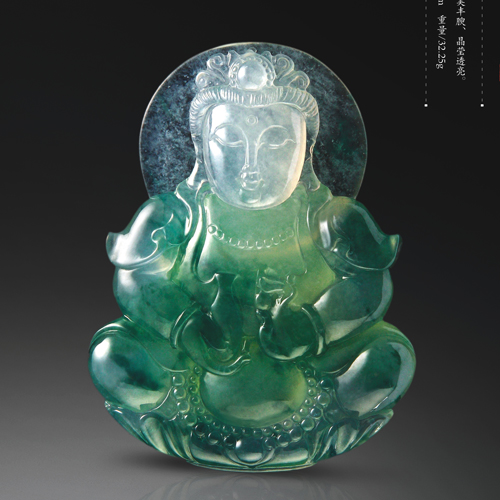 冰種飄藍(lán)花觀音,俊美豐腴、端莊高雅,晶瑩透亮。